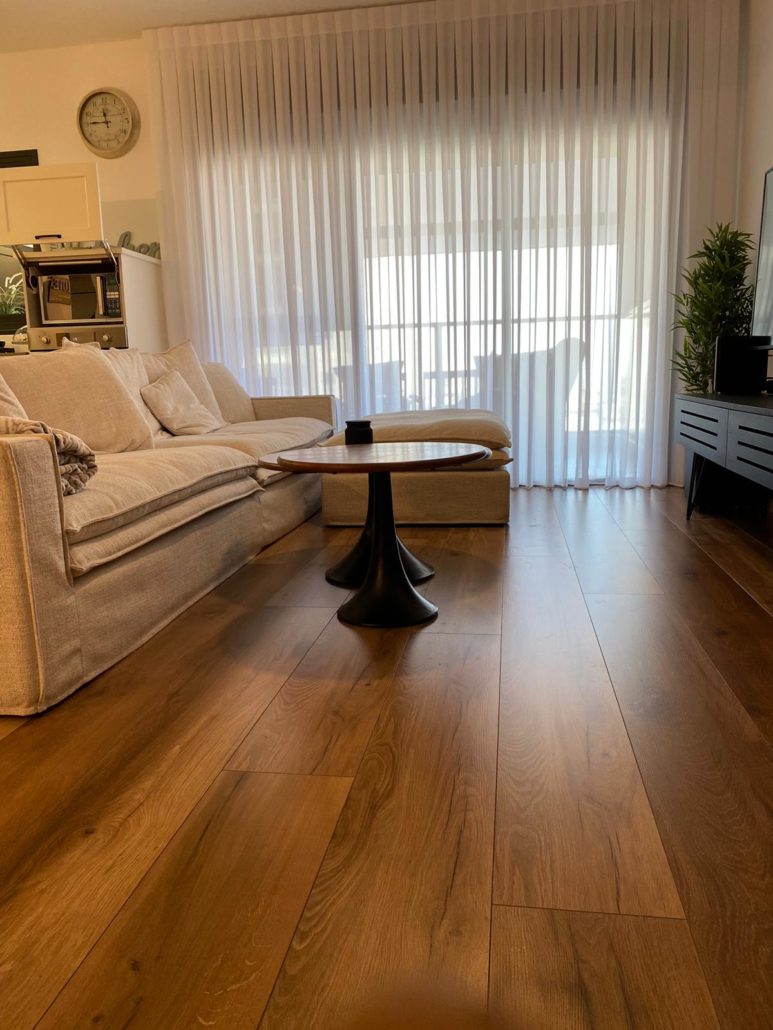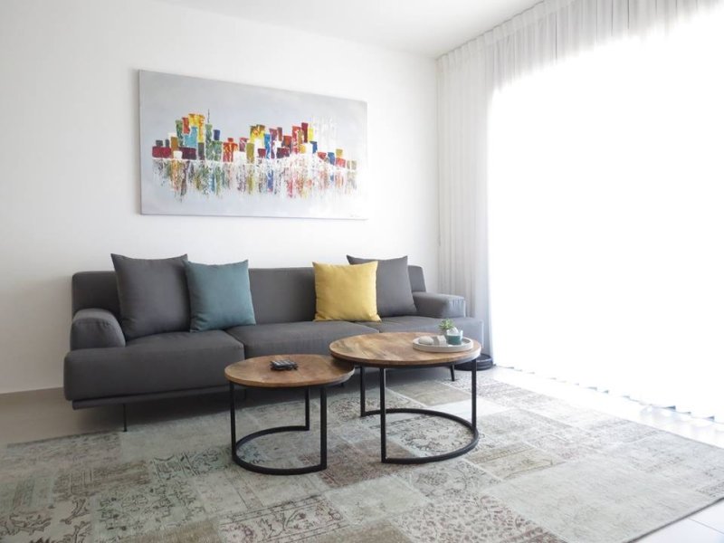דירה זו עברה שדרוג באמצעות פרקט למינציה איכותי – הלבשת וילונות בכל הבית וטפטים .